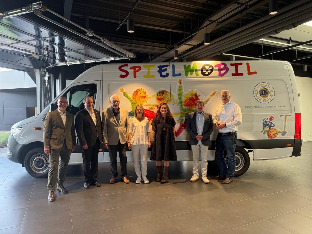 Dass es bald wieder heißt „Hurra, das Spielmobil ist da!“ ist der großartigen Unterstützung des Lions Club Baden-Baden zu verdanken! Das neue Spielmobil konnte vergangene Woche in den Räumlichkeiten der Mercedes-Benz Vertretung der Firma Wackenhut an die AWO übergeben werden. Unter Federführung von Past-President Dr. Tomas Schnell und President Alfons Seiterle sammelte der Lions-Club Baden-Baden beim Charity-Golfurnier Ende Juni insgesamt 15.000 € ein. Dass dann alles so schnell ging, war dem Verhandlungsgeschick von Helmut Oehler und dem großzügigen Angebot der Firma Wackenhut zu verdanken. Für die AWO Baden-Baden ging ein langgehegter Wunsch in Erfüllung – ein „neuer Gebrauchter“ kann als Spielmobil bald wieder unterwegs sein.